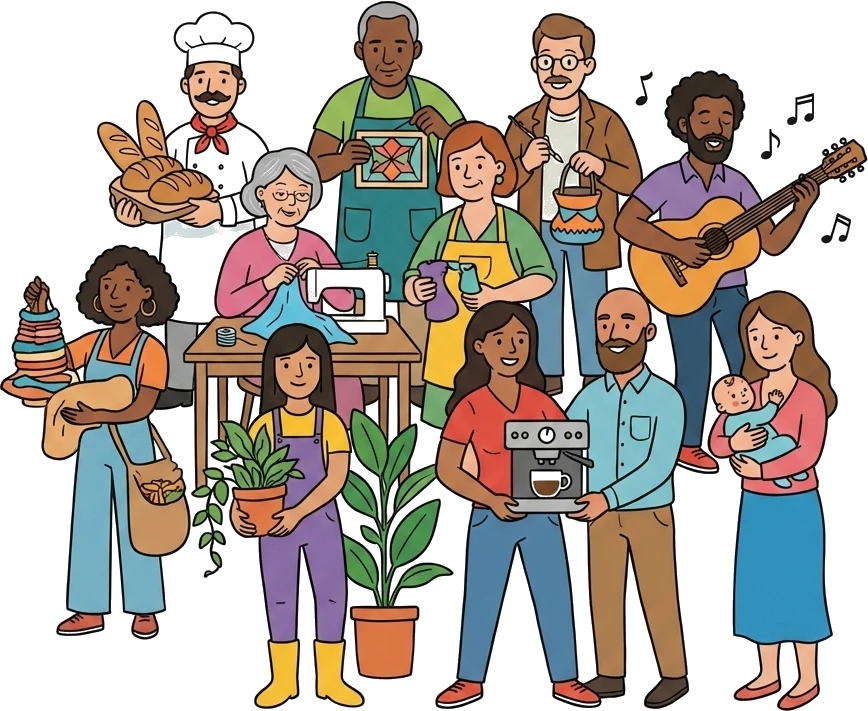 Pastelería, pan casero, cosmética natural, productos tejidos, sahumerios, decoración, desayunos personalizados, y mucho más. Todo elaborado artesanalmente por emprendedores de tu barrio.